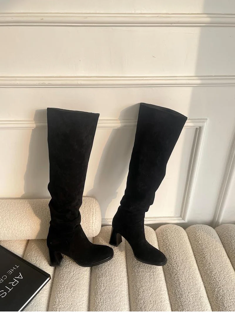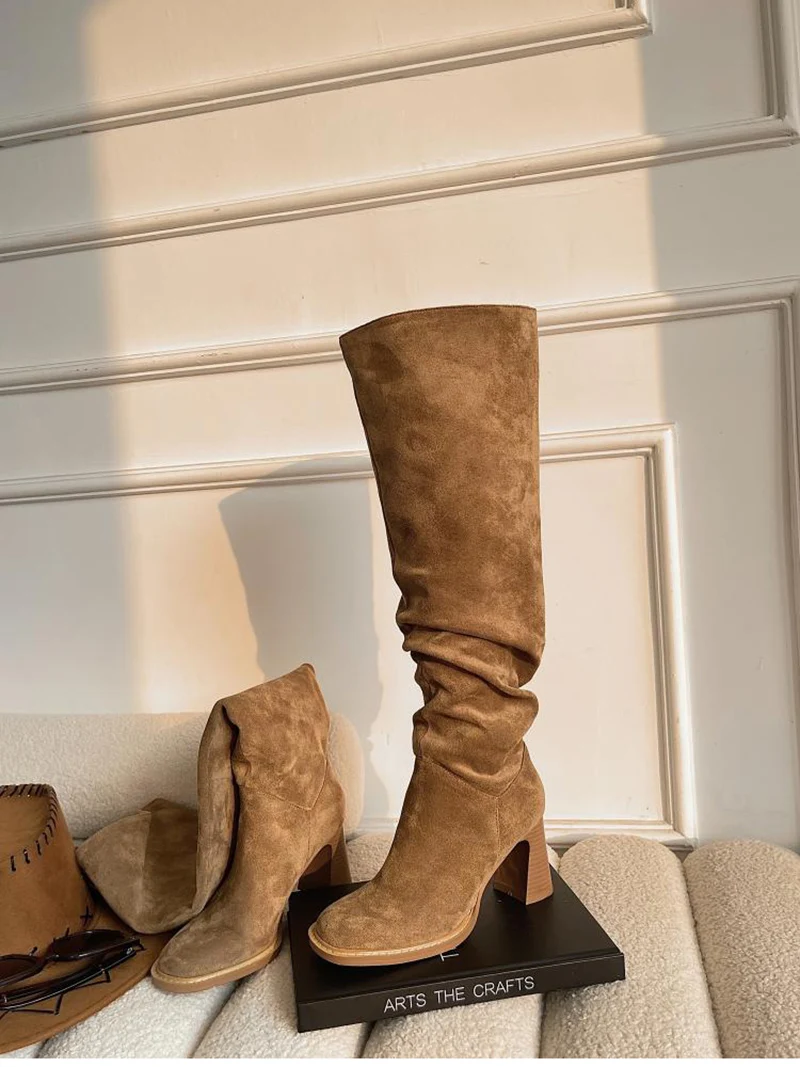 Dotées d’un talon carré haut (entre 5 et 8 cm) et d’une petite plateforme (0 à 3 cm), ces bottes offrent un bon maintien et un confort optimal pour marcher. L'intérieur est doublé en microfibre douce, avec une semelle intérieure en tissu, et une semelle extérieure en caoutchouc résistante pour une bonne adhérence. Leur structure est conçue pour les adultes recherchant un équilibre entre mode et fonctionnalité.