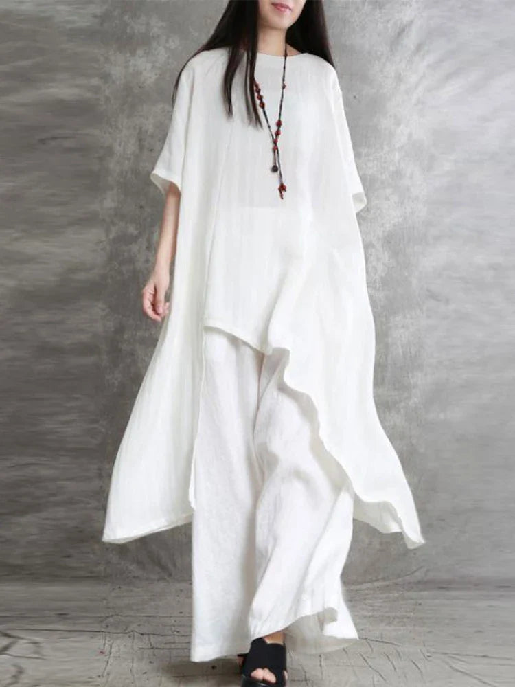 Cet ensemble deux pièces combine élégance et confort avec une coupe droite et un design minimaliste. Le haut à col rond et manches courtes offre une allure épurée, parfaite pour un look décontracté mais soigné. Sa fermeture boutonnée et sa longueur standard assurent un port agréable, idéal pour les femmes à la recherche d’un style pratique et intemporel.